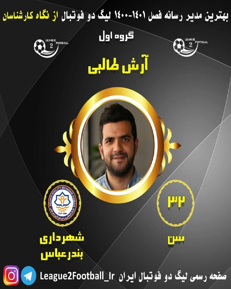تابناک-طالبی برترین مدیر رسانه لیگ دسته دوم در گروه اول شد.